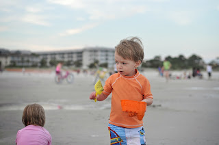 After that, each morning we got up and headed straight to the beach to spend the day. Yes, of course we put our bathing suits on and packed a lunch. Lyla was quite content to spend her day running in and out of the water, playing in the sand, making castles, and her FAVORITES, jumping the waves and collecting seashells. We had quite a nice collection of seashells to take home, which is saying a lot (like how hard we looked for those shells) because Hilton Head just doesn't have that many shells on the beach. Unfortunately we forgot them and Mimi and Gramps were supposed to bring them. Gramps never got that memo, so those shells found a new home and Mimi spent her next week at the beach hunting for new shells to bring home. I think she may have even purchased a new sand dollar??